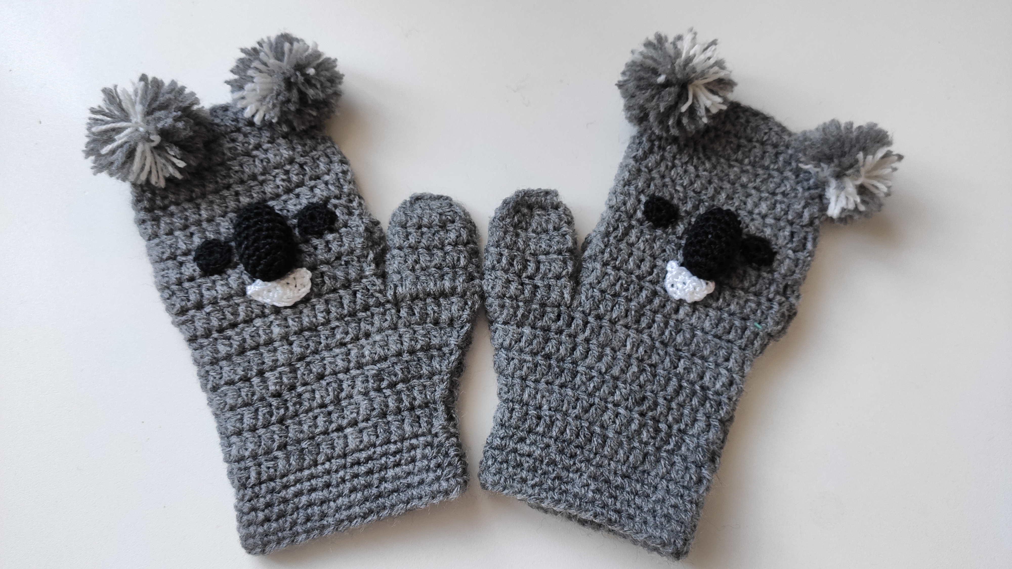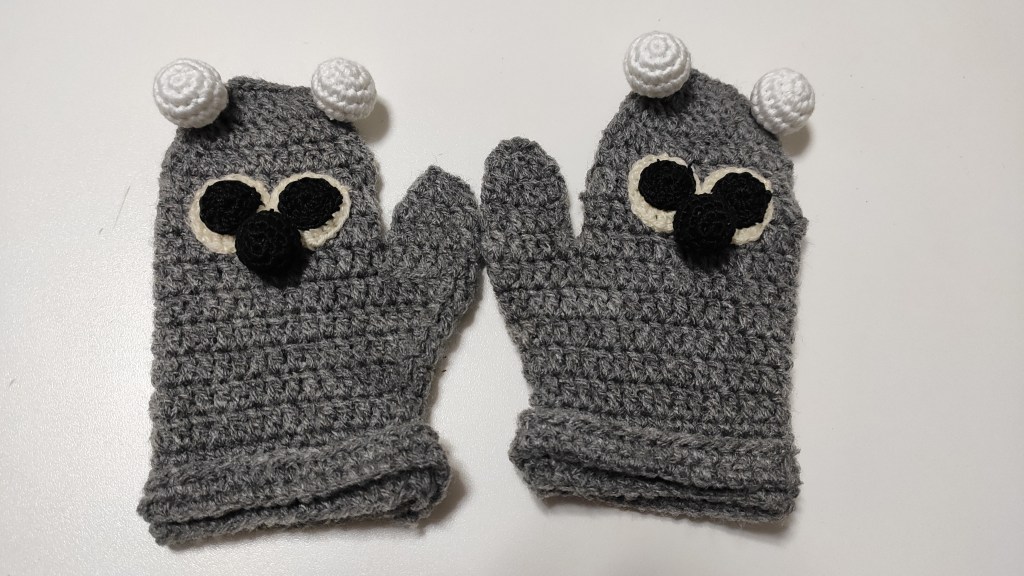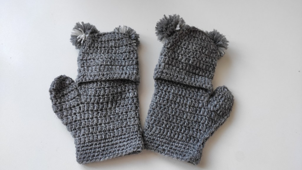 Seguimos con la serie infantil con otro modelo de manoplas. Esta vez se trata de un koala. Como veréis en la parte de atrás, va con la posibilidad de sacar los deditos para que resulten más cómodas en el caso de tener que agarrar algo sin necesidad de quitárselas. Así las manos pueden seguir calentitas.