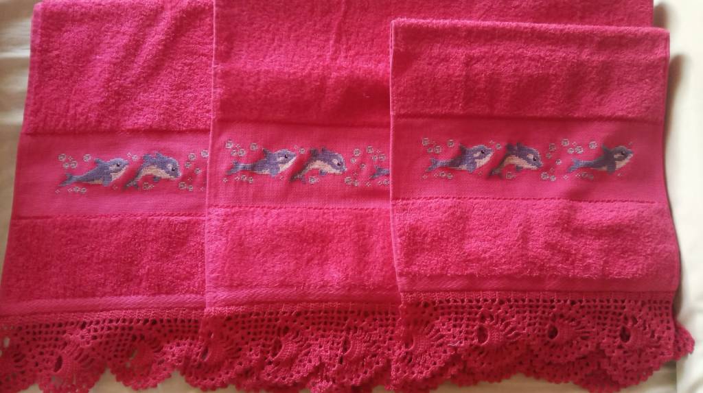 Inicio una nueva colección con una serie de toallas bordadas en punto de cruz y con remate a ganchillo. Esta es una de mis favoritas, tanto por el color como por los elementos decorativos. Y a vosotros, ¿os gusta?