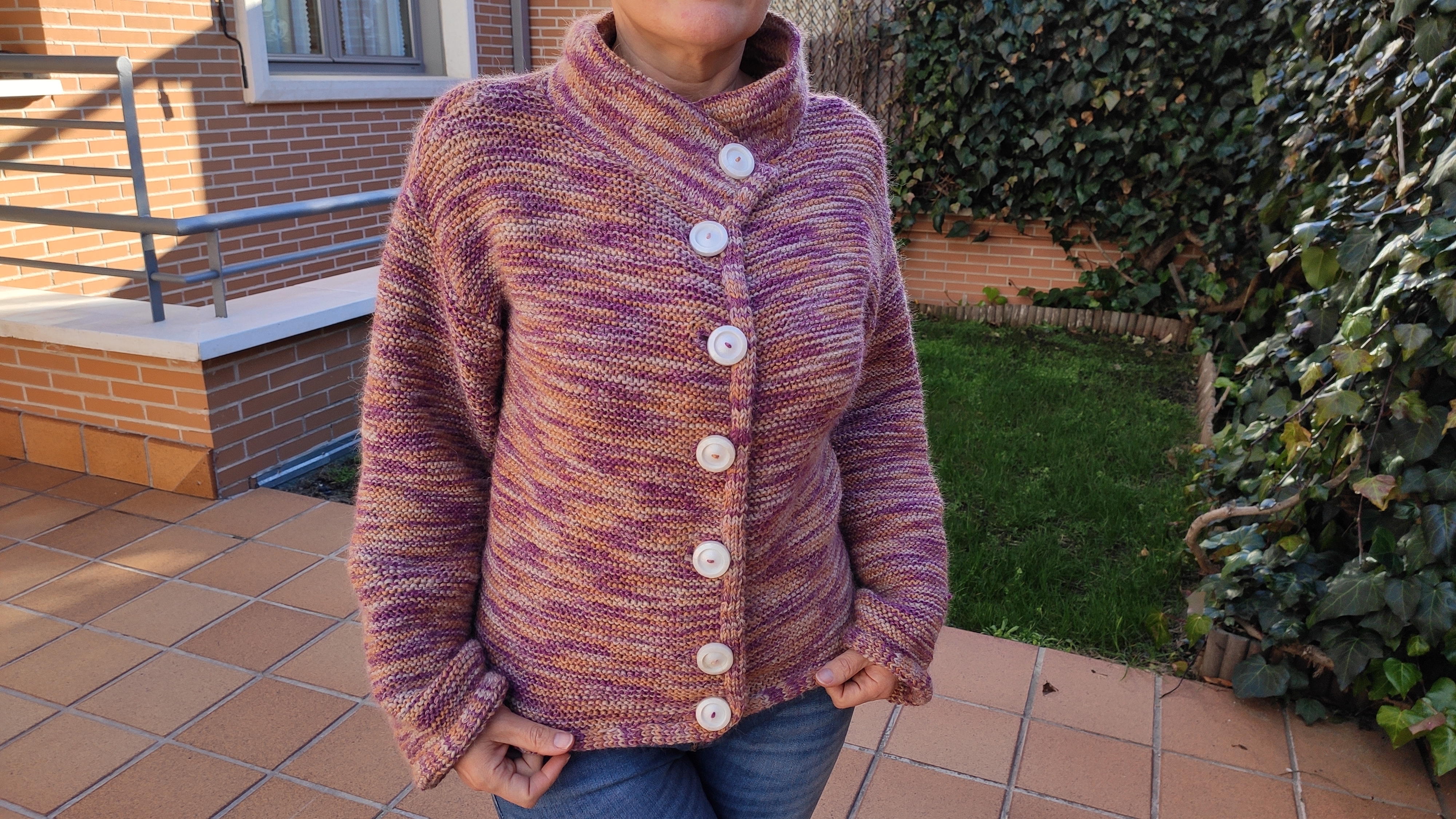 Cerramos hoy los contenidos de este invierno, con una chaqueta de punto. Tengo que decir que me enamoré de la lana en una tienda y la compré, sin más. Y que hice la chaqueta completa sin ningún patrón y sobre la marcha. Es algo que tratándose de punto y sin ser una experta, me parece todo un logro. Creo que el resultado final está muy bien y que tengo una chaqueta que puedo llevar sin nada más porque abriga bastante la verdad.