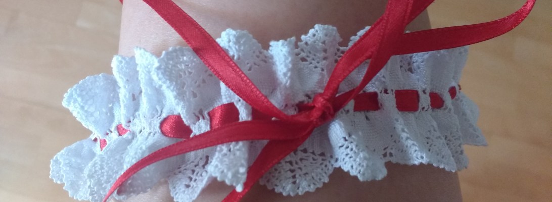 Este año ha sido un poco peculiar por razones personales y no podía llevar mucho peso, así que las clases de bolillos las he pasado haciendo una liga para una compañera que dentro de unos años va a cumplir sus bodas de oro. Llevábamos tiempo bromeando con que tenía que hacerle la liga así que estaba claro, éste era el momento. No es mi talla pero creo que se ve más bonita sobre una pierna que sola, espero que os guste 🙂