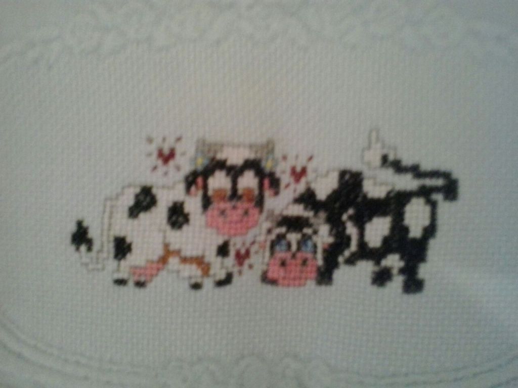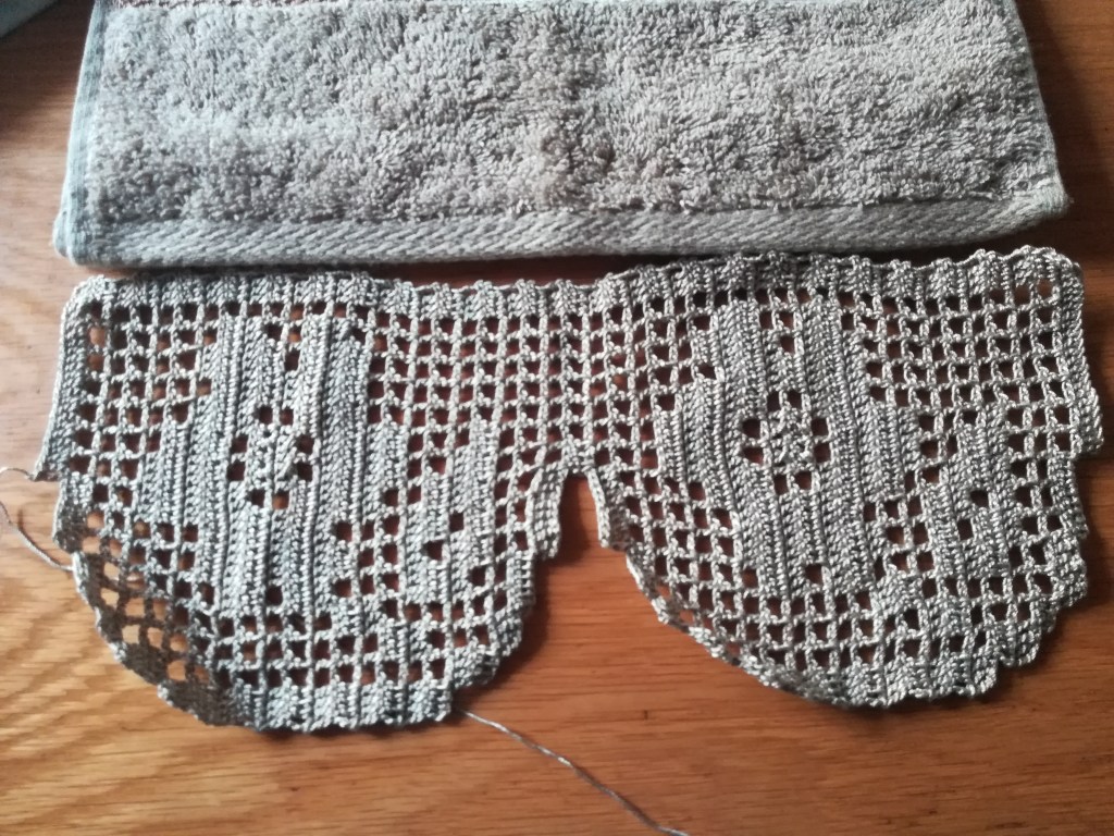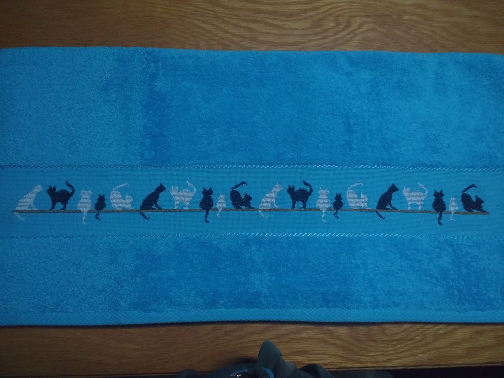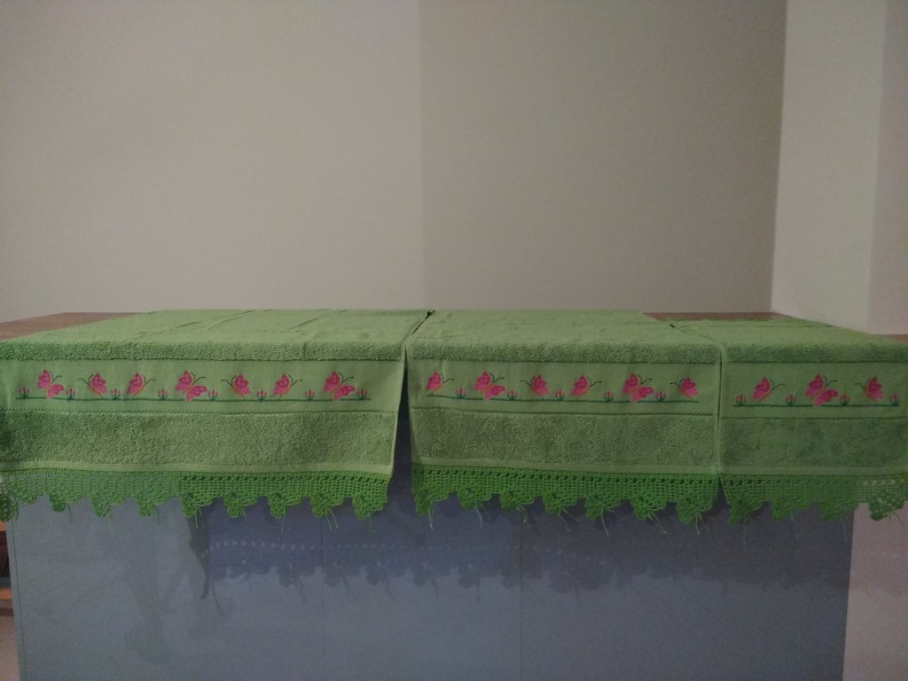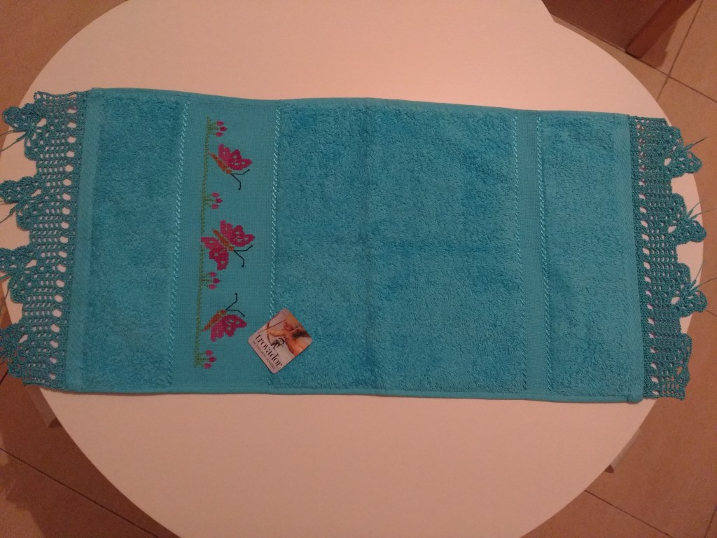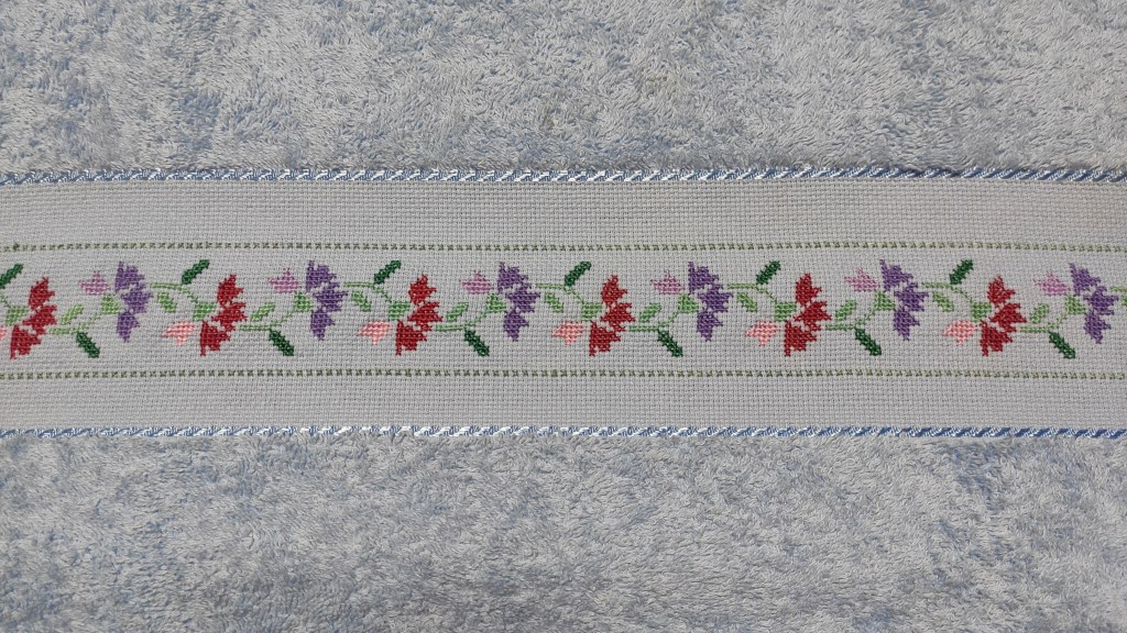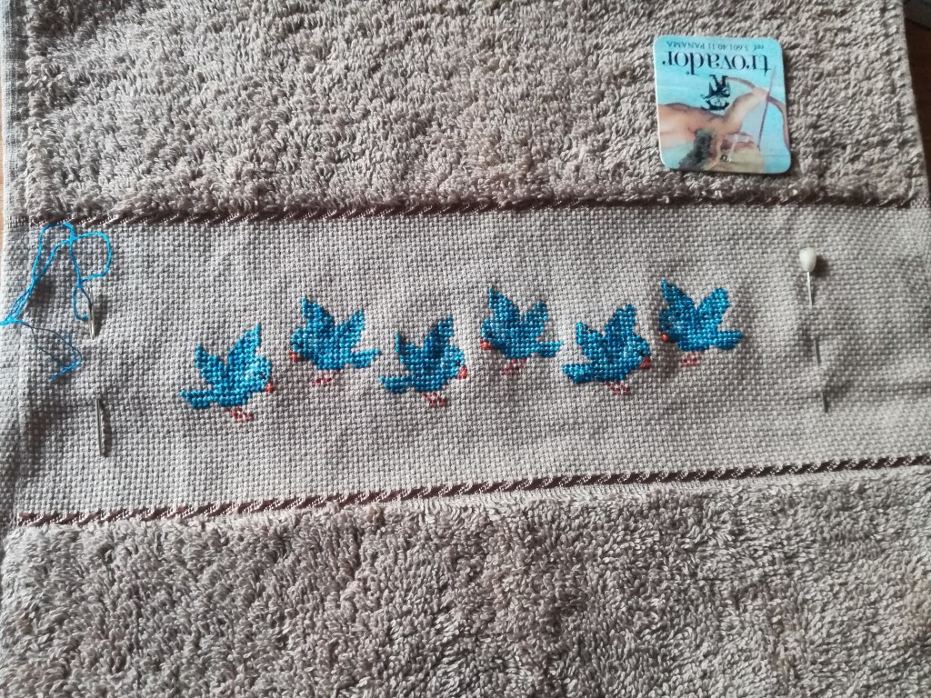 Toallas de punto de cruz y ganchillo. Juego completo: 80€